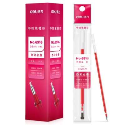 得力(deli)中性笔芯0.5速干学生用水性签字笔替芯考试办公写字 6916/拔帽子弹头*红色