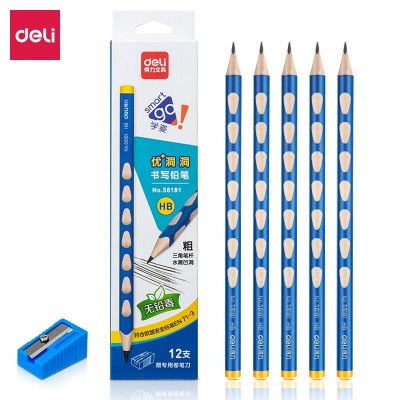 得力(deli)58181_12支彩盒装HB中粗洞洞铅笔粗杆三角杆易抓握 学生练字笔(混)(12支/盒)(12盒)SYHW