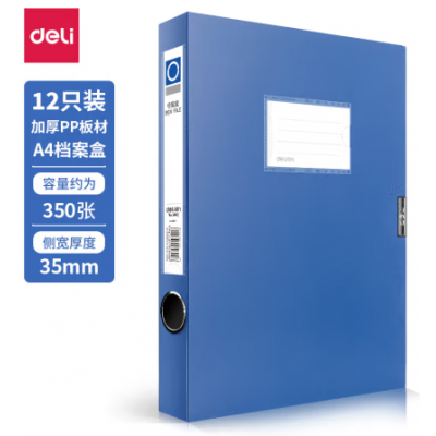 得力(deli)档案盒 加厚档案盒 A4档案盒 粘扣档案盒 塑料文件盒 资料收纳资料盒 背宽35mm档案盒 5602 办公用品文件盒 蓝色档案盒