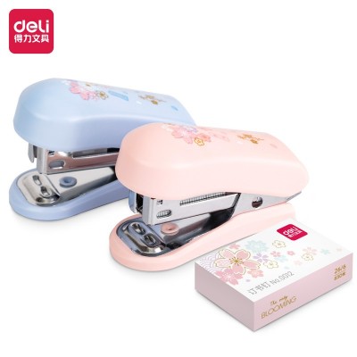 得力(deli) 迷你订书机套装 儿童订书机订书器 学生文具办公用品 樱花季12号0257混色