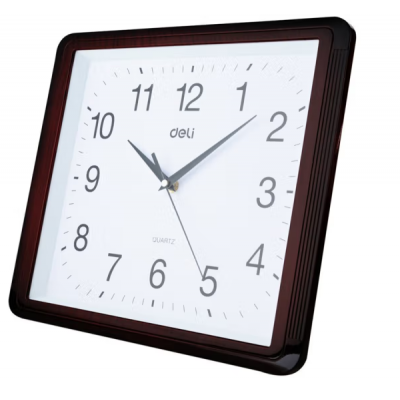 得力(Deli) 挂钟 9007 仿木 方形 34.5*30CM