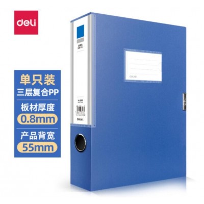 得力(deli) 档案盒 A4档案盒 塑料大号档案盒 加厚收纳文件盒 带标签档案盒 背宽55mm档案盒 收纳整理资料册 蓝色 5683 单个装