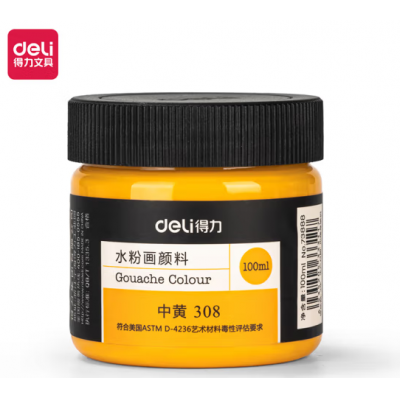得力(deli)水粉颜料 100ml大容量瓶装画画美术专用 水粉画成人学生儿童艺考初学者入门绘画色彩 中黄73888