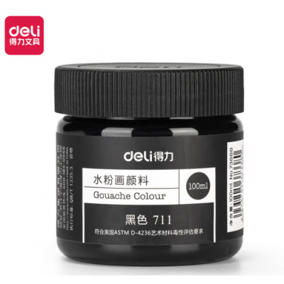 得力(deli)水粉颜料 100ml大容量罐装画画美术专用 水粉画成人学生儿童艺考初学者入门绘画色彩 黑色73888