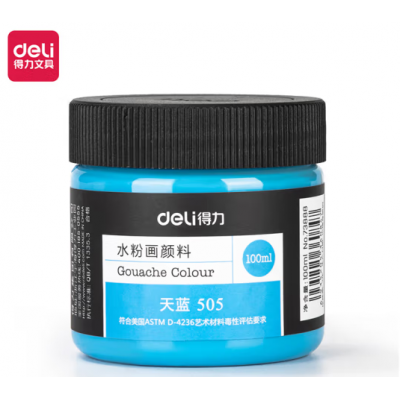 得力(deli)水粉颜料 100ml大容量罐装画画美术专用 水粉画成人学生儿童艺考初学者入门绘画色彩 天蓝73888