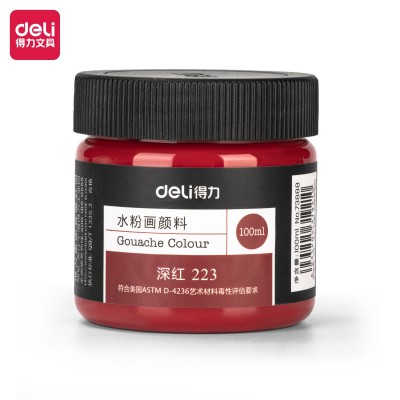 得力(deli)水粉颜料 100ml大容量罐装画画美术专用 水粉画成人学生儿童艺考初学者入门绘画色彩 深红73888