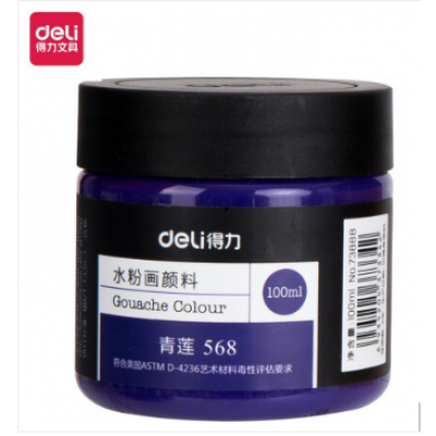 得力(deli)水粉颜料 100ml大容量罐装画画美术专用 水粉画成人学生儿童艺考初学者入门绘画色彩 青莲73888