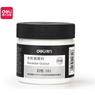 得力(deli)水粉颜料 100ml大容量瓶装画画美术专用 水粉画成人学生儿童艺考初学者入门绘画色彩 白色73888