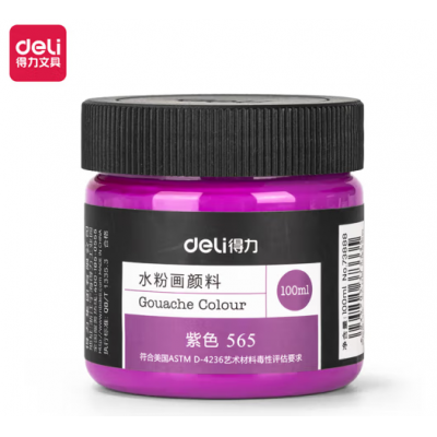 得力(deli)水粉颜料 100ml大容量罐装画画美术专用 水粉画成人学生儿童艺考初学者入门绘画色彩 紫色73888