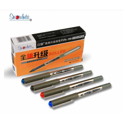 白雪(snowhite)PVN-166 走珠中性笔 针管型12支/盒 黑色作业神器直液式中性笔走珠笔签字笔刷题笔学生用