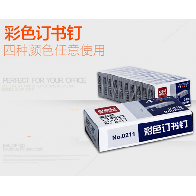 得力订书钉 彩色订书钉 12#订书钉 24/6 订书钉 800枚/盒 混色订书钉