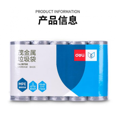 首页 > 用具 > 其他厨房用具 > 得力垃圾袋 加厚加韧垃圾袋 5卷装 45*50cm 银色垃圾袋 18750