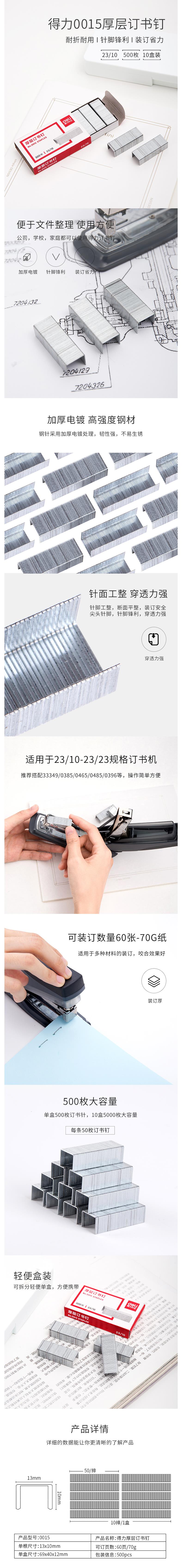 得力(deli)订书钉 0015订书钉 15号订书钉 厚层订书钉 订书针 23/10 500枚/盒