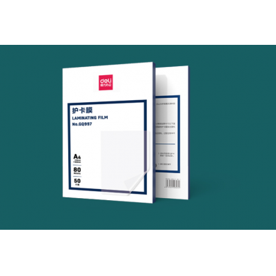 得力GQ997护卡膜过塑保护膜 80mic A4(透明白)(50片/盒)