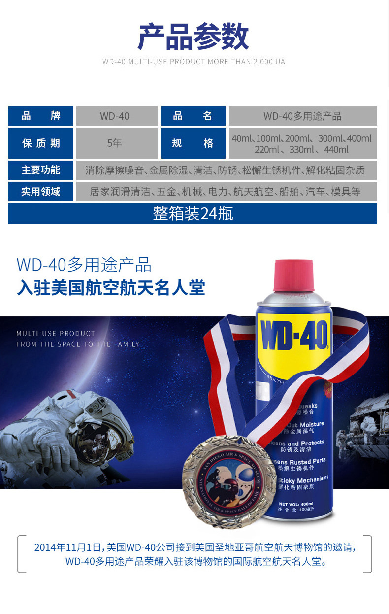 wd-40 除锈剂润滑油机械防锈油 清洁剂金属强力400ml