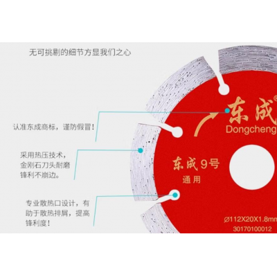 首页 > 建筑建材 > 手动工具 > 东成 云石片/金刚石圆锯片/混凝土瓷砖石材切割片锯片 9号通用片