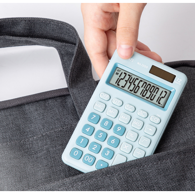 得力1200便携型计算器12位双电源轻薄机身硅胶(浅蓝)(台)