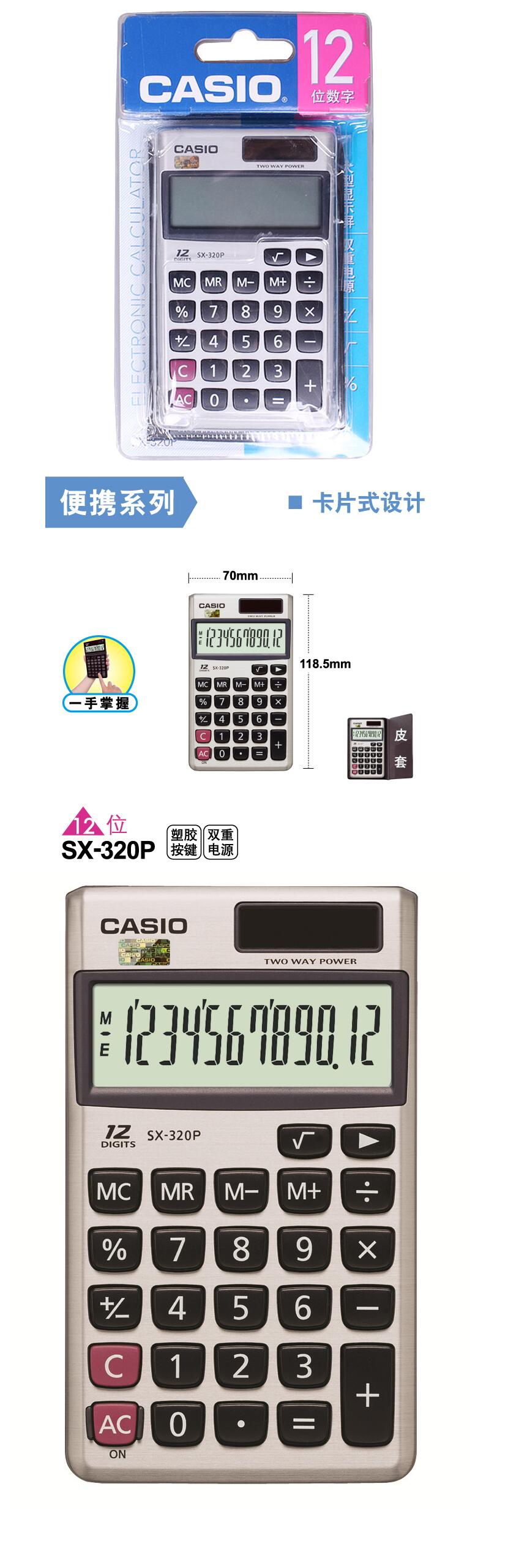 Casio卡西欧 SX-320P 小型太阳能计算器 12位计算器