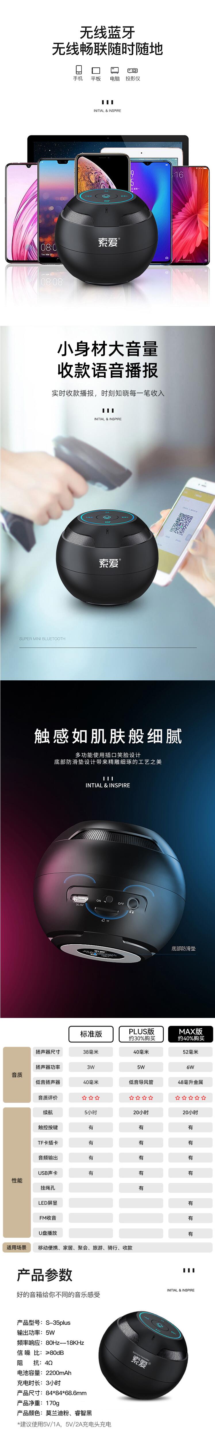 索爱(soaiy)S-35Plus蓝牙音箱音响插卡迷你 黑色