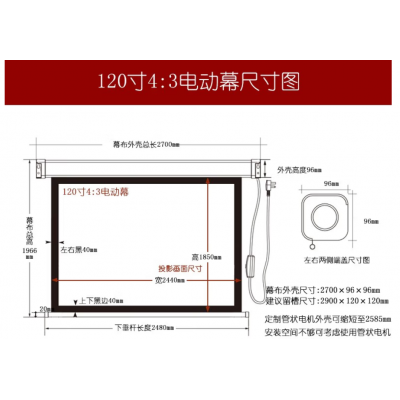 商品名称:红叶(HONG YE) 电动投影仪幕布100/120/150/180英寸遥控玻纤办公高清4:3白塑幕 白塑幕 120英寸4比3+遥控器