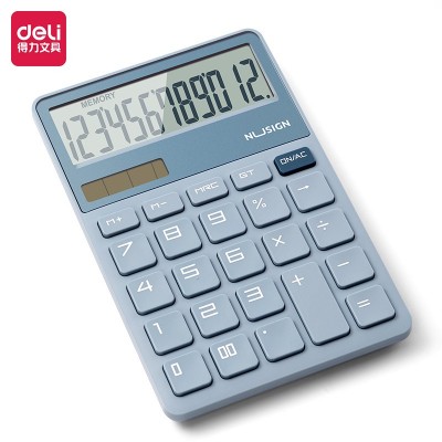 得力(deli) 办公计算器 便携式小号太阳能双电源计算机 桌面多功能财务计算器 纽赛NS042-蓝色