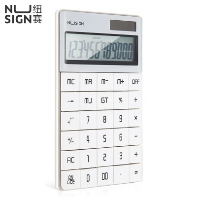 纽赛(NUSIGN)时尚12位显示双电源桌面计算器计算机 NS041 净白