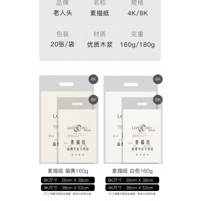 老人头8k素描纸-20张装素描纸