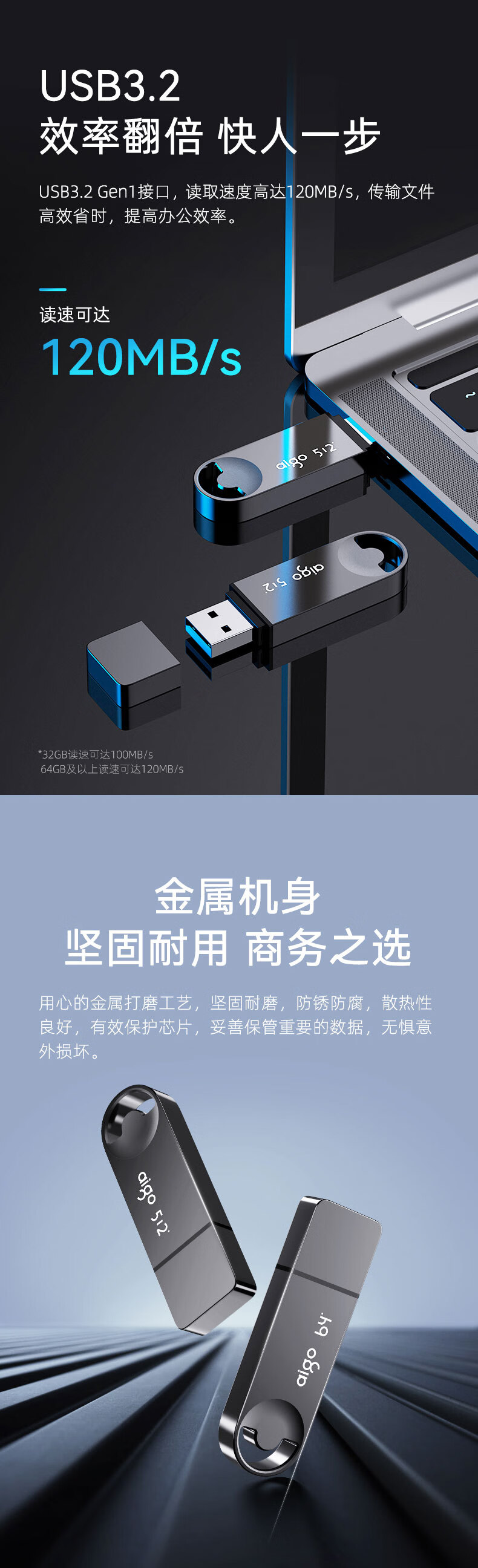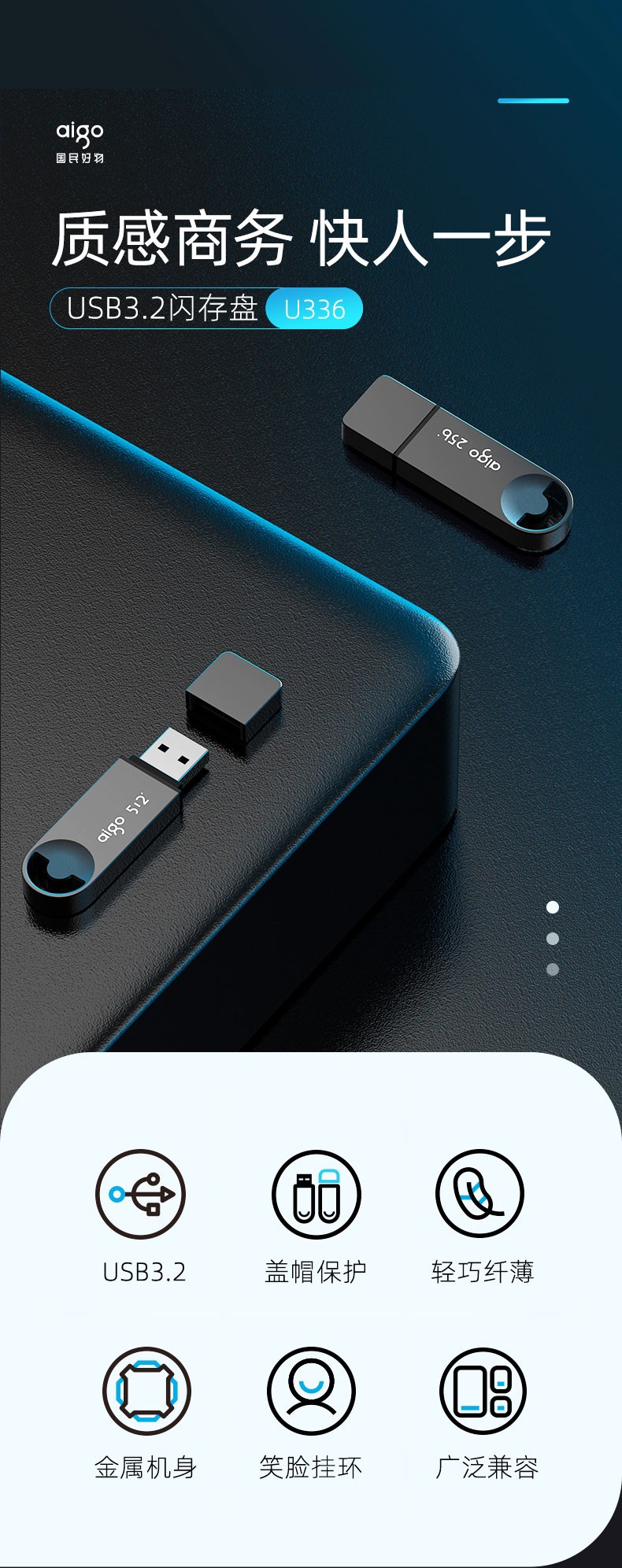 首页 > 信息化设备 > 移动存储设备 > 爱国者(aigo)256GB优盘 USB3.2U盘 U336 金属盖帽 系列效率快传 微笑办公
