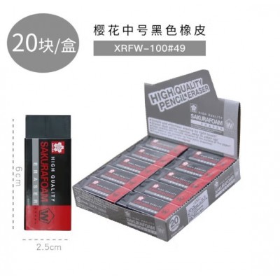 樱花橡皮文具原装进口高光橡皮多规格橡皮整盒装马卡龙色橡皮整盒 \x08学生文具 绘画橡皮擦 无屑橡皮 XRFW-100中号黑色橡皮整盒装(20块装)