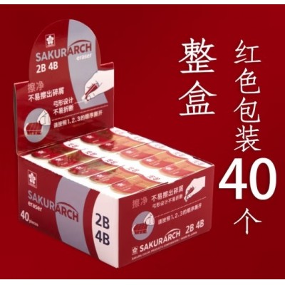 樱花(SAKURA) 樱花2b4B学生橡皮擦美术生专用素描绘画不易留痕擦得干净考试铅笔擦儿童学生文具 XRAJ-60CA红色四十个/盒