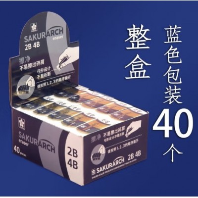 樱花(SAKURA) 樱花2b4B学生橡皮擦美术生专用素描绘画不易留痕擦得干净考试铅笔擦儿童学生文具 XRAJ-60CB蓝色四十个/盒