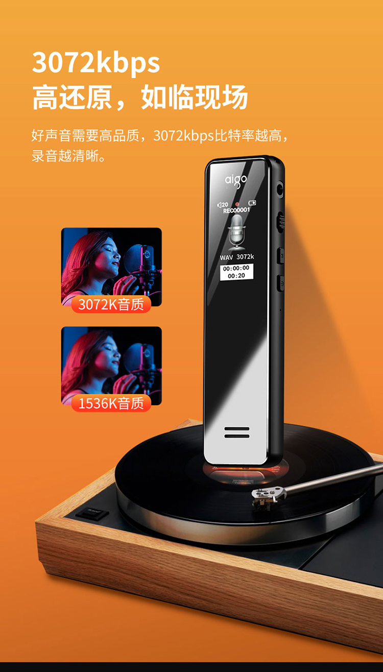 爱国者aigo 录音笔R6933 32G专业录音器一键录音设备微型 录音笔转文字 炫黑