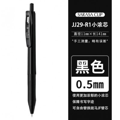 日本ZEBRA斑马牌中性笔jj29限定纯白杆按动考试顺利笔jjs29学生用彩色水笔0.5/0.4mm 黑杆 黑色BK 0.5mm