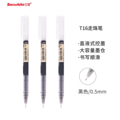 白雪 黑色中性笔 速干全针管头签字笔0.5mm 12支装T16