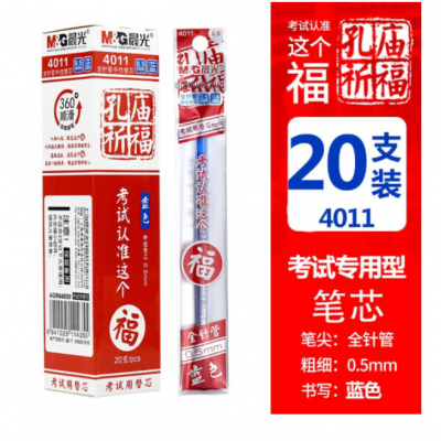 晨光 笔芯0.5mm 签字笔水笔芯陶瓷球珠替芯孔庙祈福4011蓝色20支