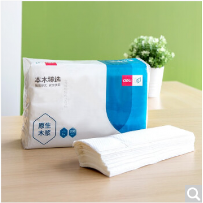 得力(deli) 卫生纸 擦手纸卷纸面巾纸抽取式 卷纸 -200张单层3折 CC1200-01 20包