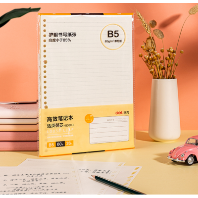 得力(deli) 活页本横线本 可拆卸笔记本子学生文具工作本日记本记事本活页纸单本装 【高效笔记】活页替芯 B5/60页