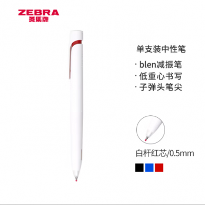 斑马 红色中性笔 减振笔 0.5mm子弹头按压速干签字笔 JJZ66-R 白杆红芯