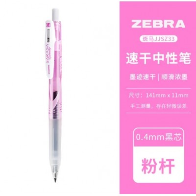 日本斑马牌(ZEBRA)速干jjz33中性笔 学霸中性笔 sarasa Speedy黑色碳素按动水笔 粉杆黑芯(0.4mm)