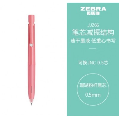斑马 中性笔 减振笔 0.5mm子弹头按压速干签字笔 JJZ66 珊瑚粉杆黑芯