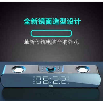 索爱 蓝牙版 电脑音响 SH16 蓝牙音箱家用桌面低音炮 时钟多媒体台式 黑
