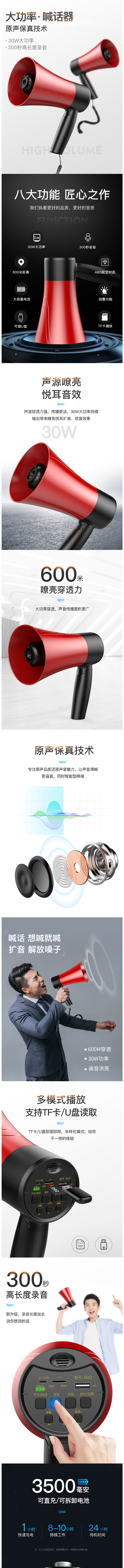 首页 > 广播、电视、电影设备 > 组合音像设备 > 会议、广播及音乐欣赏系统 > 雅兰仕 903录音大喇叭扬声器户外手持宣传可充电喊话器扩音器大声公便携式高音喇叭扬声器 黑红色