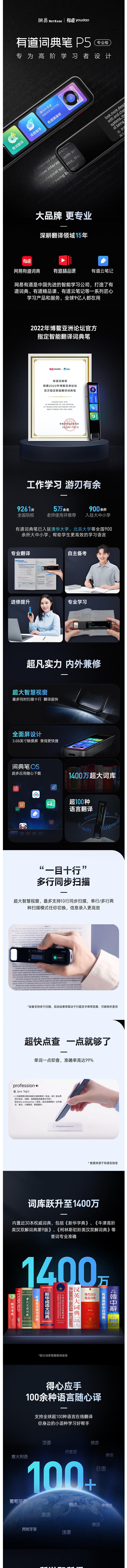 网易有道词典笔P5专业版 英语点读笔翻译笔 电子词典单词笔