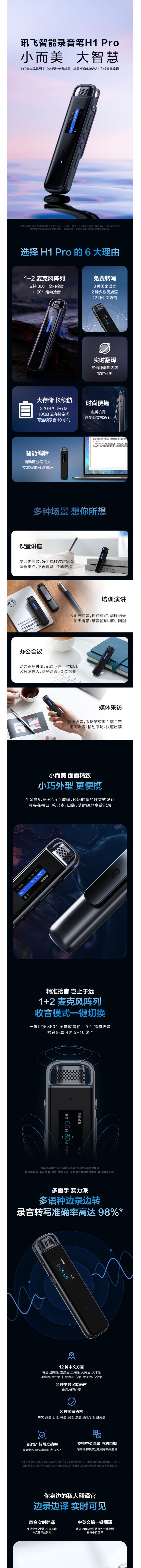首页 > 广播、电视、电影设备 > 音频设备 > 录音外围设备 > 科大讯飞 智能录音笔H1 Pro听见转写助手32G专业高清降噪会议录音转文字翻译 讯飞智能录音笔