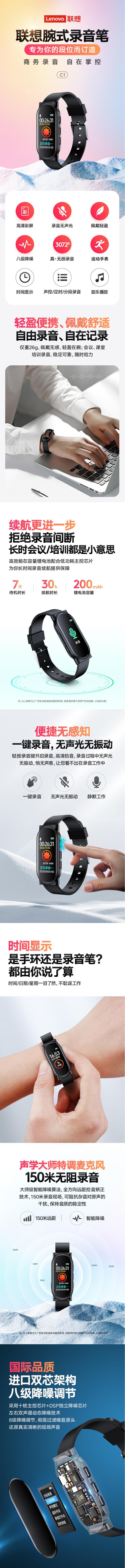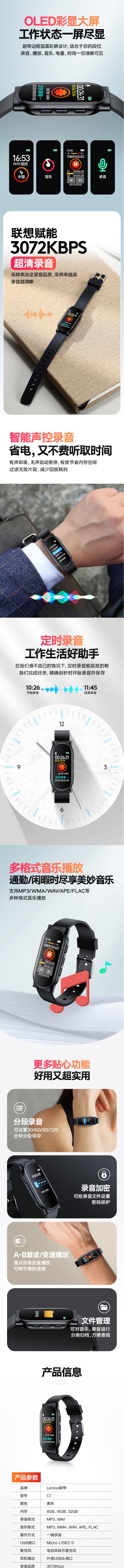 联想 录音笔C1 32GB录音手环 腕式录音器 SKU:RX0105805
