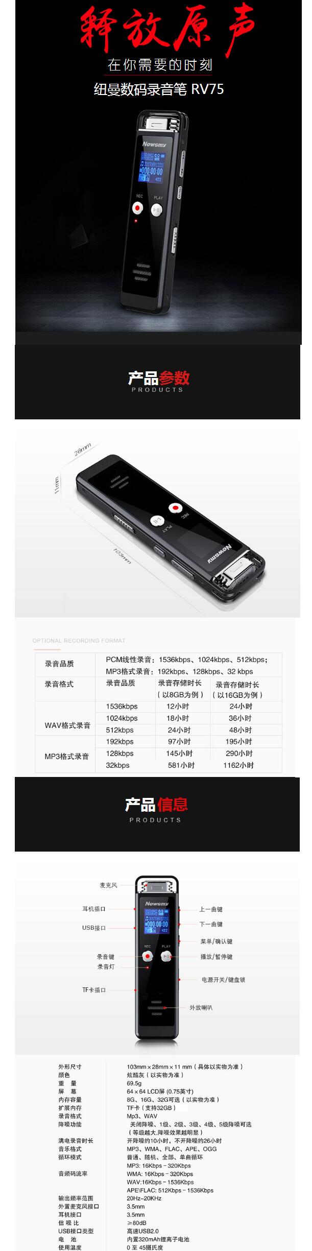 首页 > 广播、电视、电影设备 > 音频设备 > 录音外围设备 > 纽曼(Newsmy)录音笔 RV75 16G 发烧级无损录音 学习培训商务会议记录留证 MP3播放器 炫酷灰