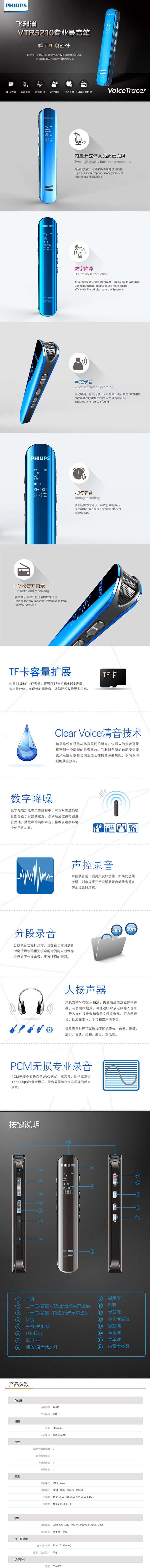 首页 > 广播、电视、电影设备 > 音频设备 > 录音外围设备 > 飞利浦(PHILIPS)VTR5210 16G 会议采访 数字降噪 双麦克风数码锂电录音笔 黑色