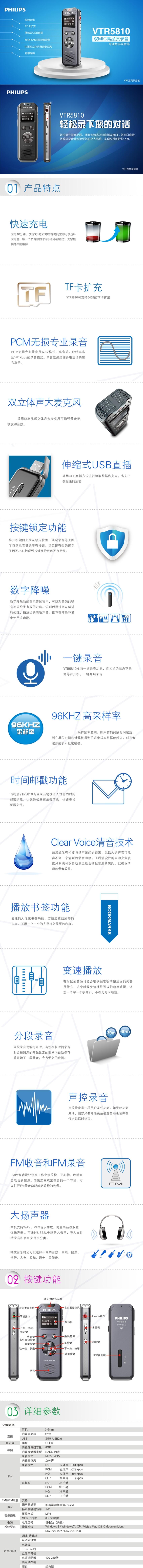 首页 > 广播、电视、电影设备 > 音频设备 > 录音外围设备 > 飞利浦(PHILIPS)VTR5810 8G 会议采访 学习记录 高品质PCM无损 伸缩式USB直插录音笔 快充功能