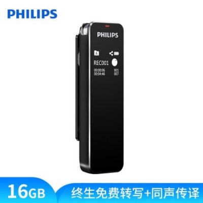 首页 > 广播、电视、电影设备 > 音频设备 > 录音设备 > 飞利浦(PHILIPS)VTR5102 16G 会议录音笔 终身免费语音转文本 智能APP 声纹感应 录写同步