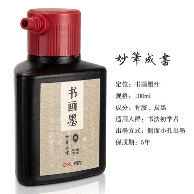 得力75511墨汁瓶装书画墨汁小学生中学生毛笔练字墨水(黑色)(100ml/瓶)